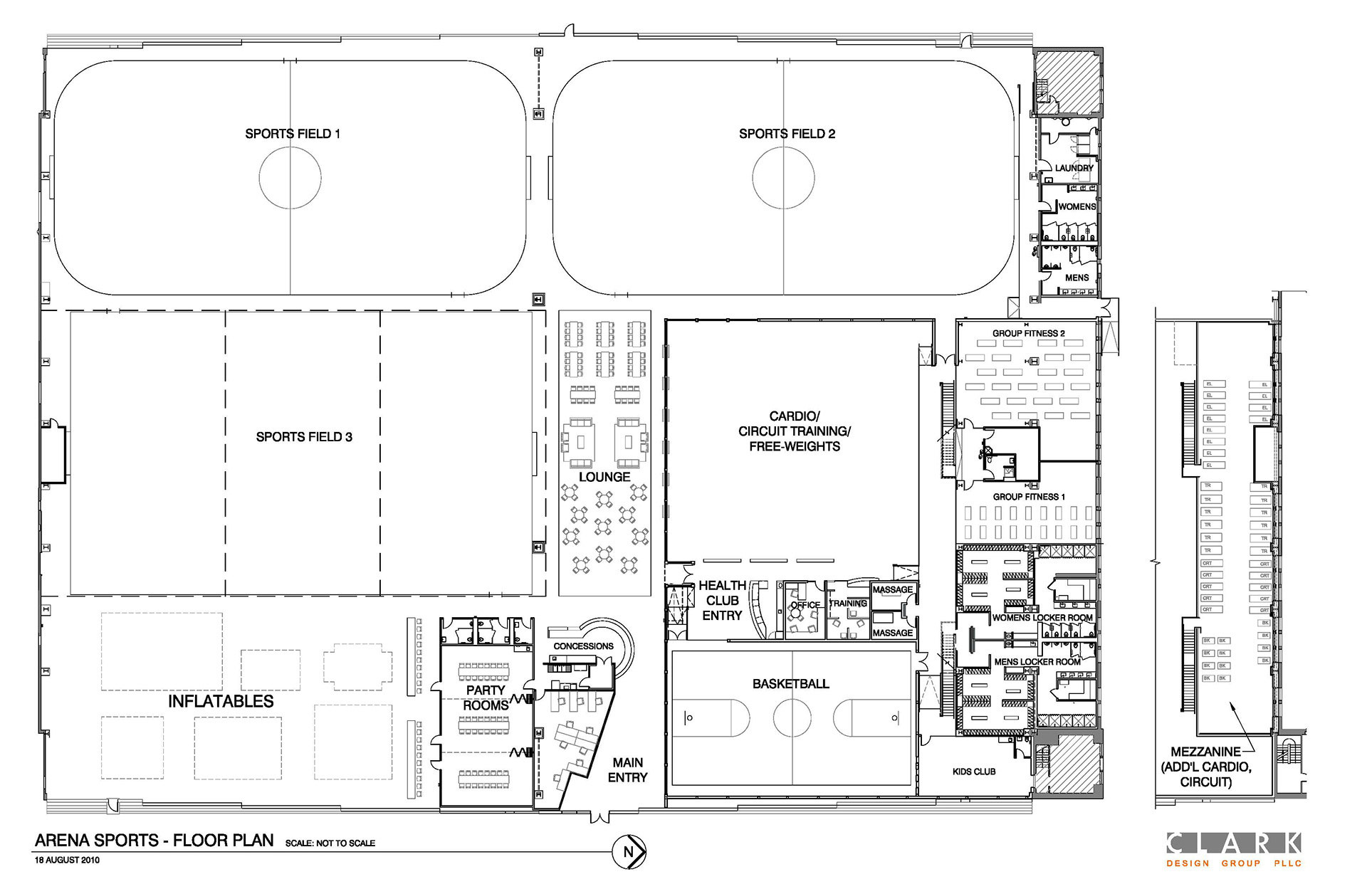 Architectural and interior design services for the renovation of an 83,600 square foot historic seaplane hangar in Seattle's Magnuson Park. The project program included 3 indoor soccer fields, a kid's party and play area, concessions, and a new 23,000 sf health club with views to Lake Washington. New architectural lighting, dramatic interior glazing system, and bold, playful colors created strong visual elements and took advantage of the building's